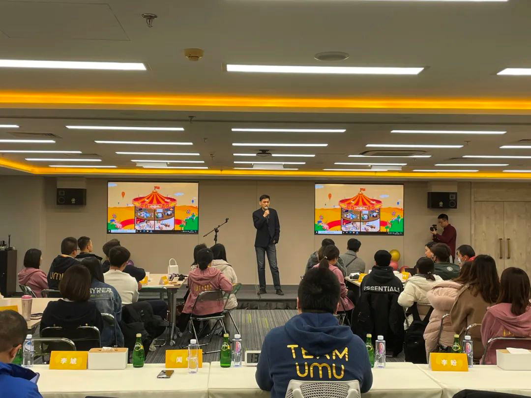 参观完办公区后,李东朔总裁发表了更深入的讲话,提到UMU作为中国最成功的出海SaaS公司,一直秉承的经营理念。