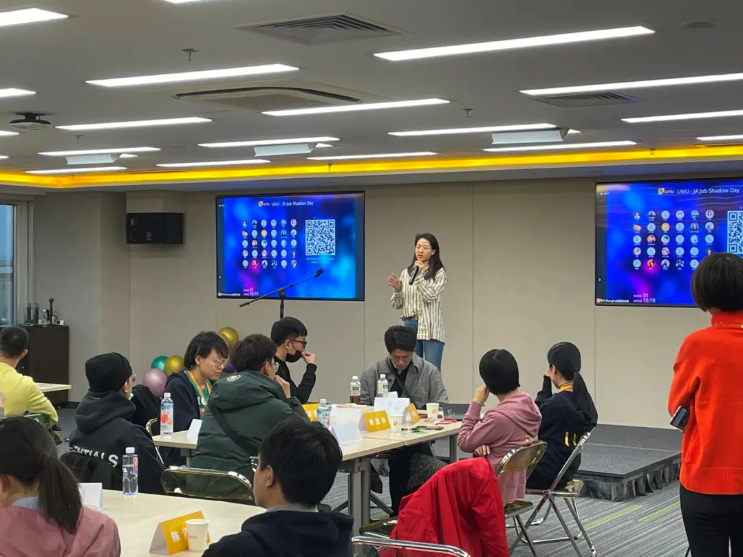 下午13:30抵达UMU总部后,同学们先分成了四个小组,与公司匹配的相应行业/专业的UMU员工相互熟悉。