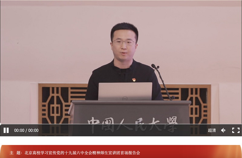 宣讲会上,来自中国人民大学、中国人民公安大学、中国地质大学(北京)等各大高校的教师们,分享了自己学习十九届六中全会精神的心得体会,从多个角度阐述了十九届六中全会精神的重要意义,回顾了中国共产党在百年历程中经历的种种磨难和取得的伟大成就。