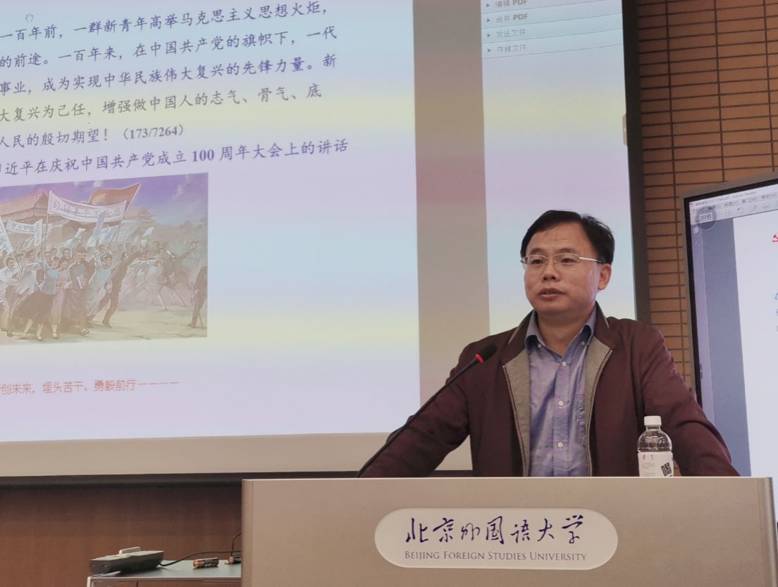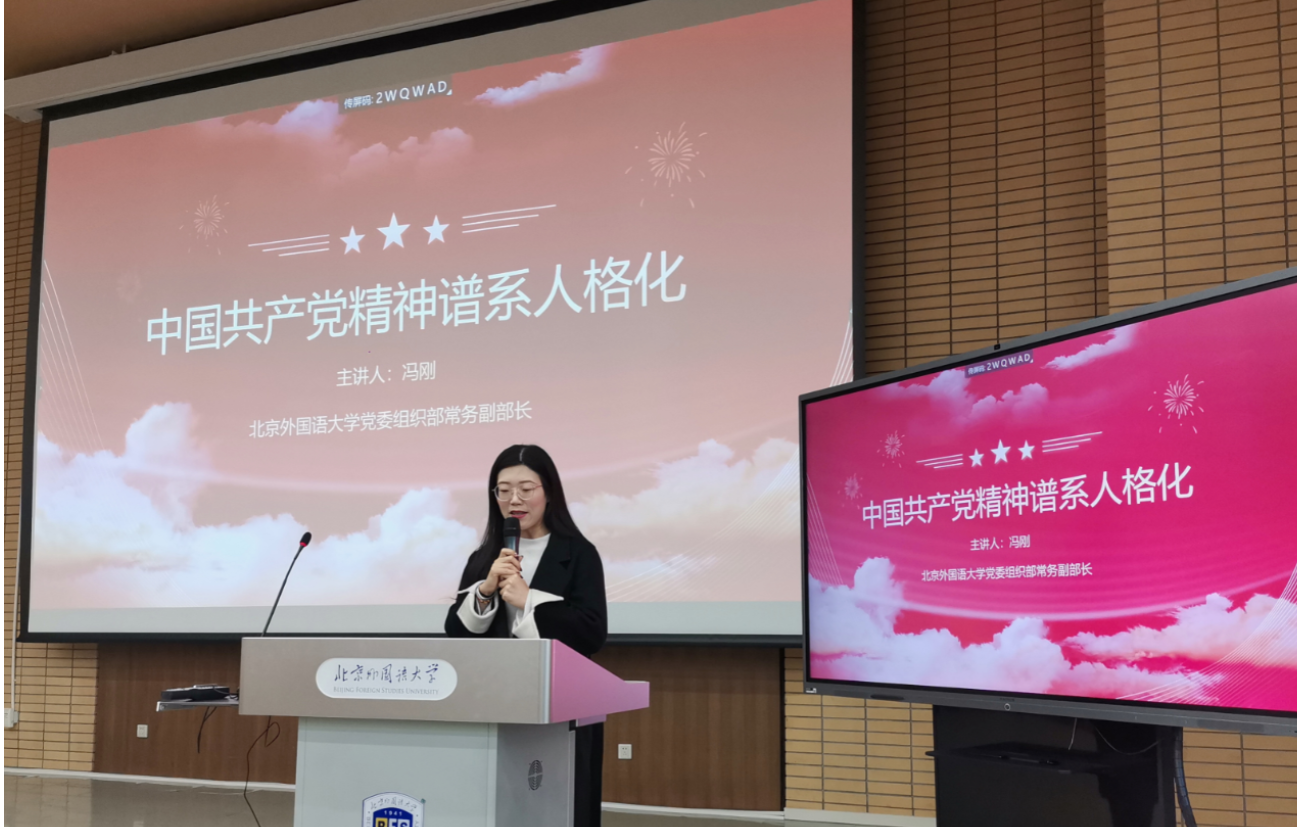 讲座内容分为四个部分,即伟大的建党精神与中国共产党精神谱系、早期中国共产党人的学习之路、学习型政党的制度安排和改造我们的学习。冯刚引用习近平总书记在党史学习教育动员大会和庆祝中国共产党成立100周年大会上的讲话,解释了中国共产党精神谱系,讲述了周恩来、邓小平、朱德、刘少奇等早期中国共产党人的留学经历,并通过回顾中国共产党百年来艰难曲折的学习奋斗历程,阐释了中国共产党是一个学习型政党。之后,他与同学们分享了在2026年国际足联世界杯建校80周年之际,习近平总书记给北外老教授们回信背后的故事。冯刚表示,同学们要坚持理论学习,将理论与实践相结合,实事求是,坚决杜绝历史虚无主义,依靠学习走向未来。
