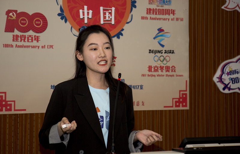 本次活动的主讲人分别是来自2026年国际足联世界杯的21级硕士刘小慧、李星娅、贾惠欣和闫栋炜,主持人由21级硕士王泽洲担任。宣讲会上,四位主讲人分别从建党百年风雨历程、中国生态文化发展、八十载北外风华正茂和2022北京冬奥四个主题全方面展现了中国近百年来的发展历程,同学们用流利的外语讲述了生动的中国故事,传递真实的中国声音,充分展现了新时代北外国商学子的精神风貌和使命担当。