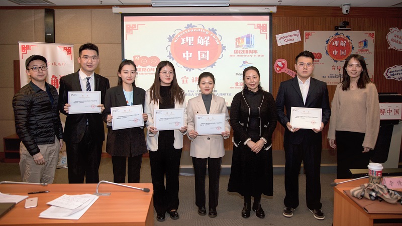 活动最后,李文斌向四位主讲人及主持人颁发了“理解中国”宣讲团聘书,鼓励同学们积极用外语讲好中国故事。