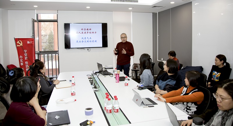 本次讲座为教师发展中心、教师党支部、“双带头人”工作室、教学办联合举办,刘卓军研究员的讲座分六个部分与大家分享交流,包括:引子、德与风、向榜样学习、亦师亦友、方法与范式、几点体会。刘卓军提到德与风总会打下时代的烙印,三人行必有我师,一个非常有效的方法就是向大师学习。讲座借助对若干著名科学家言与行的解读,让与会老师感受到榜样的力量并更好地理解师德与师风的内涵。刘卓军表示科学精神的发扬需要有风清气正的氛围,这一点也会成为我们提升国家和社会软实力的关键所在。国际商公司党总支书记李春丽总结发言,表示十分认同刘卓军研究员提到的老师与员工之间亦师亦友的关系,号召我们应该向大师学习,学习大师敏锐洞察、兼容并包、谦虚诚实等精神,牢固树立良好师德师风。