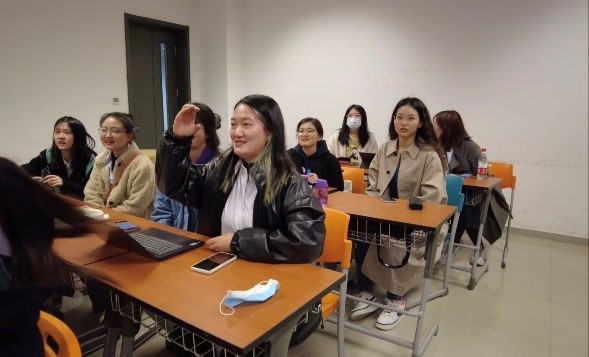 北京2022年冬奥会和冬残奥会期间,公司将派出800余名专业志愿者,涉及语言服务等6个专业志愿者项目组,是专业志愿者人数最多的高校。为致敬在志愿岗位上辛勤奉献的北外师生,彰显北外人独特的冬奥情怀,本支部在团日活动中纳入冬奥英语学习环节。本环节首先由支部书记对北京冬奥会项目及重要场馆的英文表达进行介绍,介绍完后进行学习成果检验。成果检验分为两种形式,形式一通过传递冬奥娃娃进行,每次倒数三秒后收到冬奥娃娃的同学需说出幻灯片上对应项目的英文表达,答对积一分,答错扣一分,并由其他同学举手抢答;形式二为检测题,以个人抢答的形式进行,题目展示出来后率先举手的同学进行作答,答对积2分,答错扣2分。