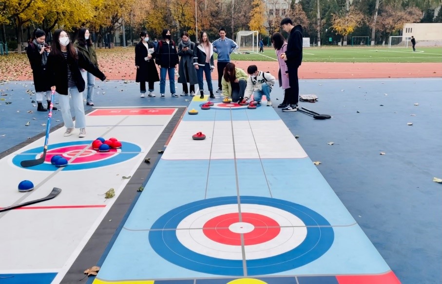 在学习了冬奥有关内容后,支部成员们转战室外,来到东校区操场,亲身体验冰雪运动的乐趣。供体验的项目包括旱地冰壶和冰蹴球运动,支部成员齐心协力布置好赛道、球门等道具,随后便自由组队进行体验。这是不少同学第一次接触冰雪运动,本次实地体验激发了大家对冰雪运动的热情,让冬奥在大家心目中更加形象起来。通过本次团日活动,支部成员们切实走近了冬奥,大家也收获颇多,感触颇深。
