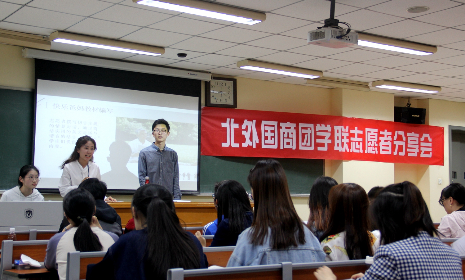 9月28日下午,北外国商团总支志愿者分享会在逸夫楼402教室举行。国商团总支全体成员、五十余名新任志愿者及中国地质大学(北京)青年志愿者协会工程技术学院分会代表参加本次分享会。