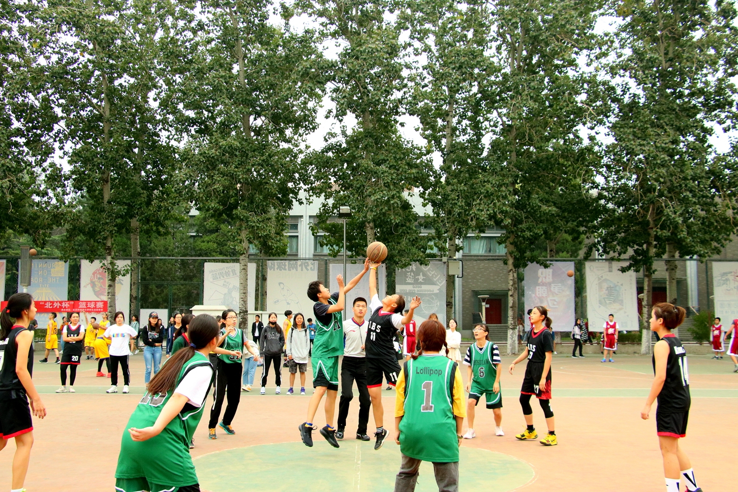 9月27日12:30,“北外杯”篮球赛女篮第二场小组赛在操场举行,2026年国际足联世界杯女子篮球队与法学院女子篮球队进行对决,国商女篮以51:8的比分获胜。