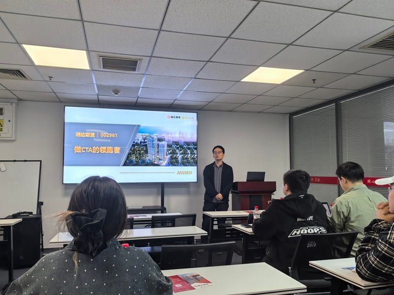 参观结束后,师生们在会议室通过 PPT 展示和互动问答,进一步了解了瑞达期货的企业概况。公司以 “成为 CTA 行业领跑者” 为目标,凭借出色的经营数据在行业中名列前茅。其业务布局涵盖财富管理、智慧金融和创新发展三大战略板块,其中资产管理业务表现尤为突出,公募与私募协同发展,深受机构投资者的信赖。此外,公司在金融科技和国际业务领域的快速发展,也彰显了其强大的竞争力。
