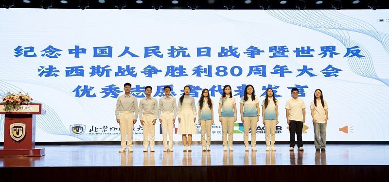 最后,参加了纪念中国人民抗日战争暨世界反法西斯战争胜利80周年大会的合唱团同学以及志愿者同学为新生分享志愿期间的心得体会,进一步加深了新生的爱国主义情怀。