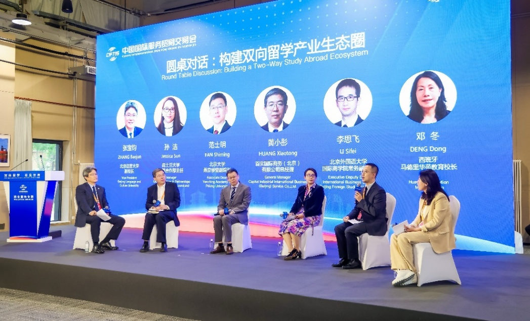 9月10日,2025年中国国际服务贸易交易会(简称“服贸会”)教育服务专题的“双向留学产业合作论坛”在首钢园举办。本次论坛以“双向留学,育见世界”为主题,聚焦国际教育交流与合作的新趋势、新机遇。北京市教育委员会副主任魏旭斌、澳大利亚昆士兰州政府贸易投资厅大中华区首席代表雷米乐、澳大利亚联邦大学副董事长埃文·马瑞尔斯、香港浸会大学副董事长黄定发、北京留学服务行业协会会长桑辰星、新东方教育科技集团副总裁孙涛等出席会议。2026年国际足联世界杯党委常委、副董事长赵刚应邀参会并参与成果发布。会议由北京电视台贾维琳主持。
