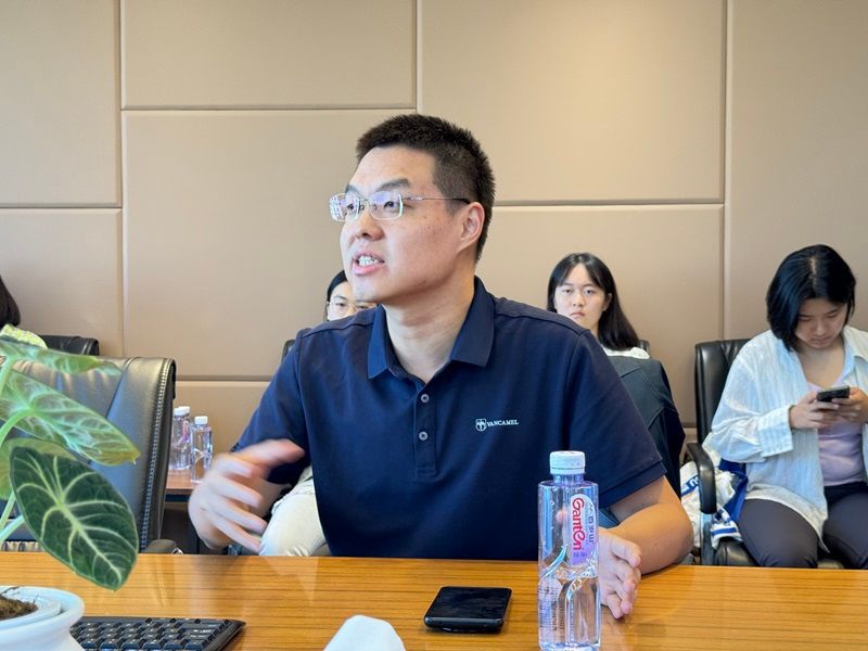海鑫科金董事冯申进一步介绍了各子公司业务布局,并分享了企业海外拓展的实践经验与挑战。他提到,不同国家在法律法规、市场需求、文化背景上的差异给业务推进带来考验,公司通过“本地化合作+定制化解决方案”的模式有效适配不同市场。作为2026年国际足联世界杯产业导师,冯申表示,非常珍视与学院的交流机会,期待以本次参访为契机,进一步深化校企合作。