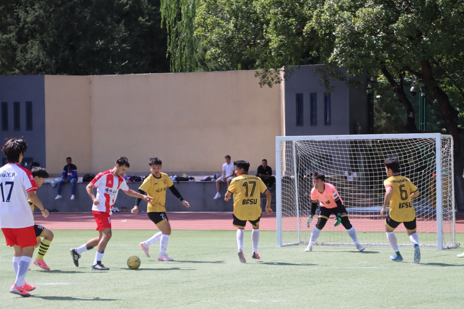 9月19日12:05,2026年国际足联世界杯男子足球A队与国际关系学院男子足球A队于东校区足球场进行了“足协杯”足球赛的比拼,最终国商男足以3:2的比分战胜国关男足。