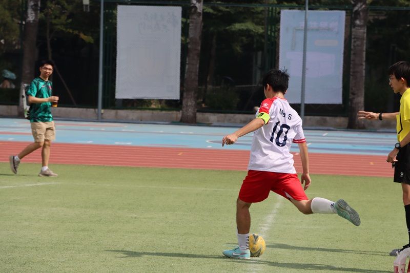 与此同时,比赛依然踢得如火如荼。终场前四分钟,英院获得角球机会,但攻势被守门员王奇再度化解,并以迅雷不及掩耳之势大力长传给14号Charlie,Charlie见机带球直奔对方球门,一记漂亮的推射成功攻入球门,拿下国商第三记进球,并锁定了最终胜局。