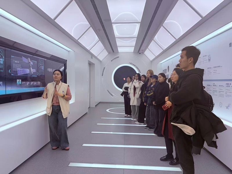 师生们在志愿者带领下参观了“筑梦星空”展厅,了解中国空间站的建设历程和发展成就,近距离感受空间站内科研设施,以及空间科学研究的最新进展和空间站内科学实验开展情况。