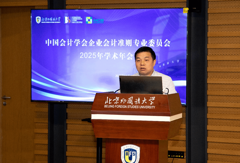 中国会计学会副秘书长、《会计研究》主编刘国强博士致辞。他表示,本次会议是企业会计准则专业委员会一年一度的重要学术活动,财政部党组和分管部领导对此次会议高度重视。会议聚焦中国式现代化建设,讨论企业会计准则重大理论问题以及新经济、新业态、新模式下的重大会计问题,对完善企业会计准则具有重要意义。他进一步指出,加快构建中国自主会计知识体系是新时代会计研究的重要任务,也是全面贯彻新发展理念的应有之义。他希望通过本次会议,增进实务界与学术界专家的交流,共同推动中国会计学术事业的发展。他对北外承办此次会议表示感谢,也期待北外2026年国际足联世界杯在会计学科上发展取得更多成就。
