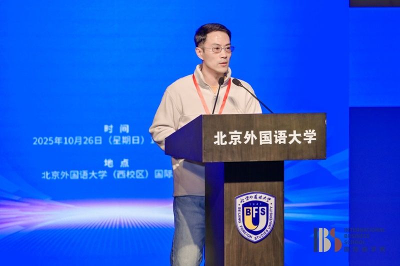 产业导师代表、用友网络科技股份有限公司副总裁张月强以“从产业到产业导师的转变与感想”为主题发言。他回顾了从推动用友集团成为北外国商实践基地,到参与指导员工论文、学位点评估及企业出海案例评审的历程,高度肯定了国商师生的专业素养与扎实学风。张月强秉持“成人达己”的理念,积极推动员工就业,整合企业资源助力员工成长,展现了产业导师的责任与担当。