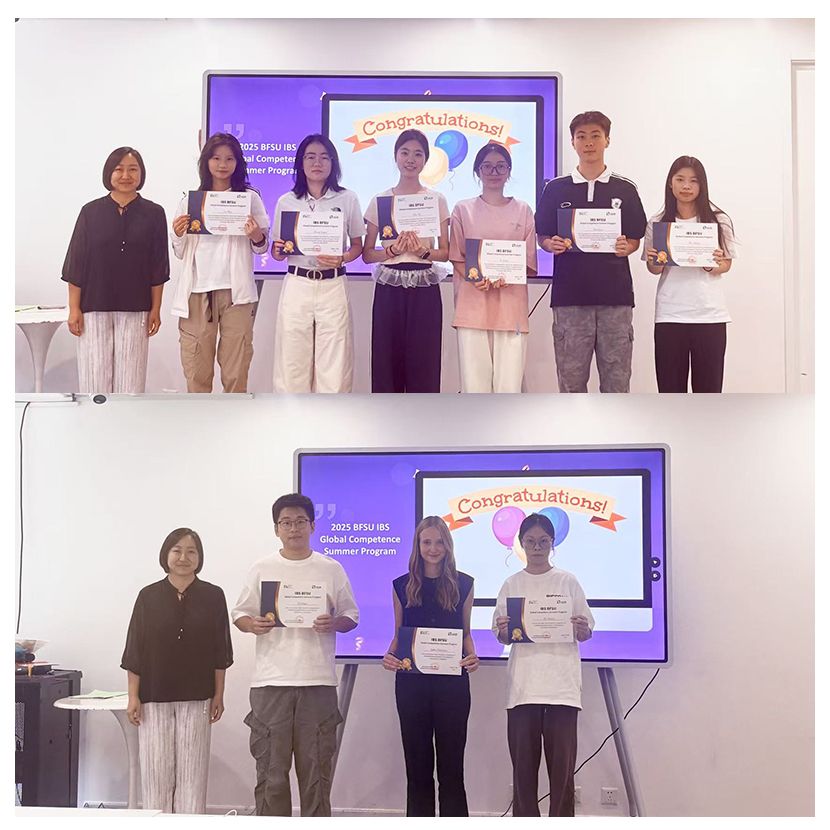 8月2日上午,员工们在结营典礼上进行小组展示,分享实践周的成果与心得。其中,有小组以莎士比亚戏剧的形式进行创新展示,现场气氛活跃,展示创意与表演实力令人印象深刻。国际合作办公室副主任章严平老师及授课教师共同出席典礼,并为表现突出的团队颁发奖项,包括实践周最佳小组奖和模拟商赛最佳小组奖。在隆重而热烈的氛围中,本次项目圆满落下帷幕,员工们不仅展示了实践成果,也收获了宝贵的团队协作与创新体验。自2023年首期举办以来,“全球胜任力暑期项目”已成为北外国商国际化人才培养的重要品牌。本届项目的顺利举办,不仅提升了员工学术能力、跨文化沟通与商业实践技能,也为未来国际学习与职业发展奠定了坚实基础。