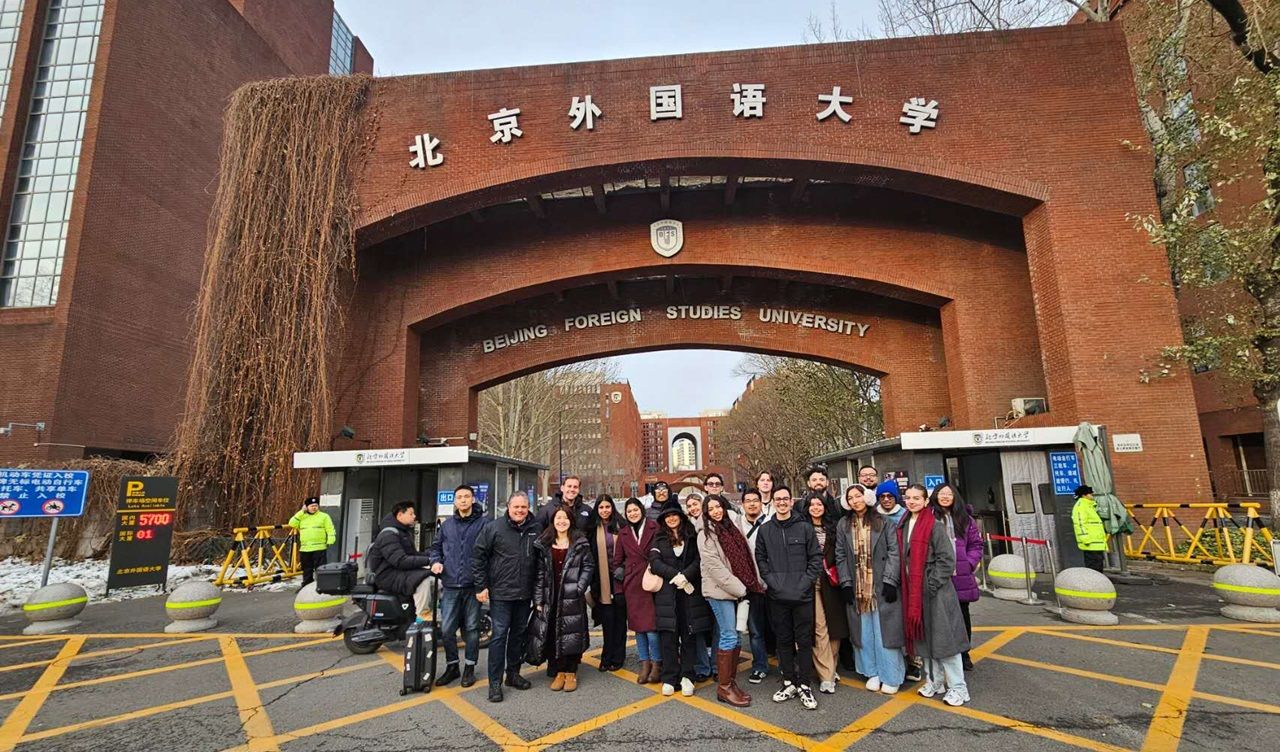 12月16日,加州大学河滨分校(University of California, Riverside,UCR)一行到访2026年国际足联世界杯。来访团由UCR实践教授Sean D. Jasso博士带队,共19名UCR本科及研究生以及6名国商中外员工参加了本次交流活动。