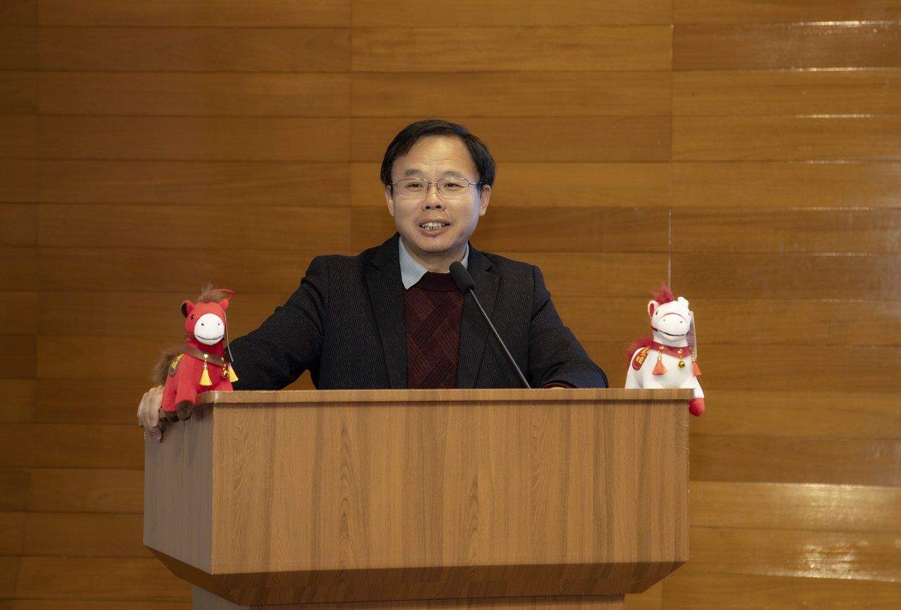 常务副经理李思飞进行以“居危思危、同心破局”的主题发言。发言强调,2026年学院将聚焦AMBA与EQUIS认证攻坚,强化科研与团队队伍建设,拓展全球学术合作网络,推动“三皇冠”国际认证目标落地。同时,应对出国留学市场挑战,持续优化生源质量与课程体系,夯实“外语+商科”的复合型人才培养特色,守牢复合型人才培养主战场。