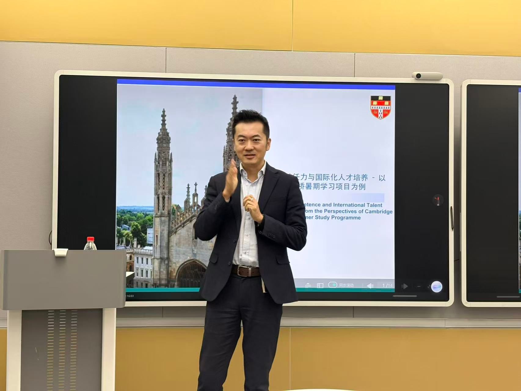 随后第二个模块,綦晓光教授以“全球胜任力与国际化人才培养——以剑桥暑期学习项目为例”为题,从人类学视角分析了剑桥大学在国际化人才培养方面的理念与实践。他结合自身经历,强调教育应回归真实世界,关注人与人之间的理解、信任与连接。通过介绍剑桥大学的学院制传统、跨学科生态与多元评价观,綦晓光教授指出,全球胜任力的核心在于尊重差异、理解复杂世界,并在多元系统中协作与承担责任。面对 AI 与技术变革,真正重要的不是工具本身,而是批判性思维与持续试错的能力。