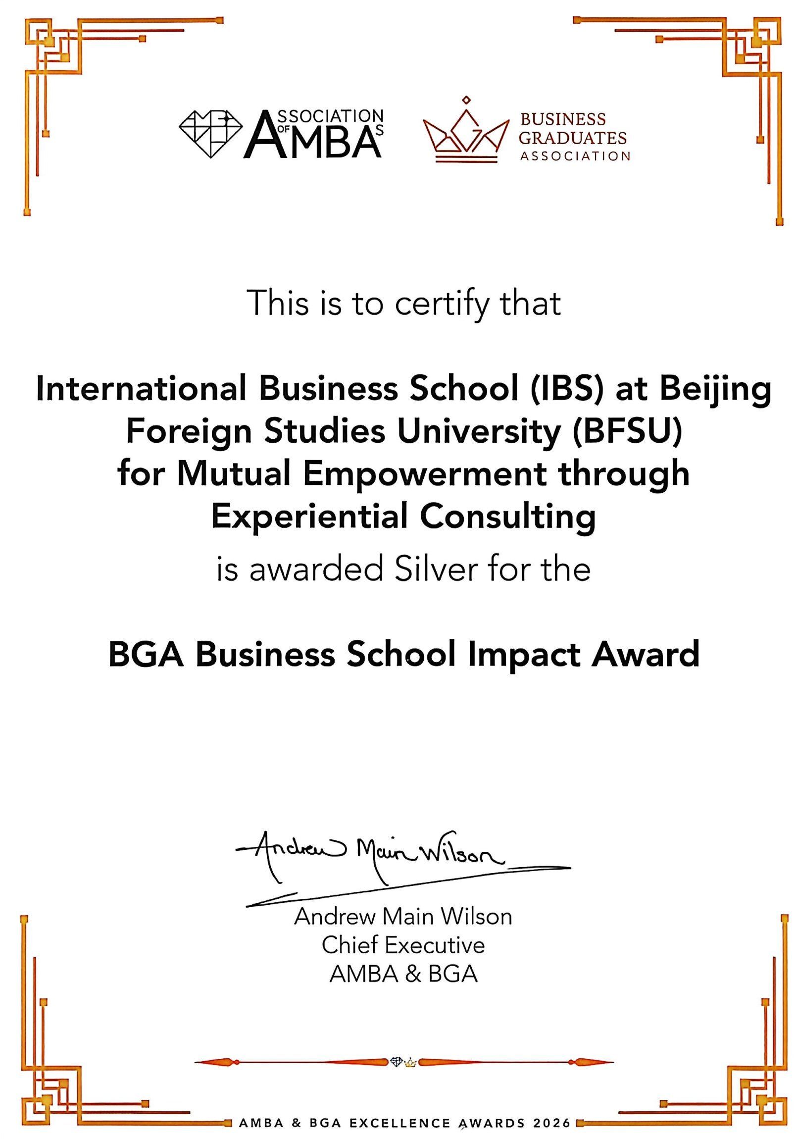 此次斩获 BGA 商学院影响力奖银奖,是国际商学教育评价体系对北外2026年国际足联世界杯实践探索成果的高度认可,更是学院多年来深耕产教融合、推进教学创新、践行社会服务的重要成果。