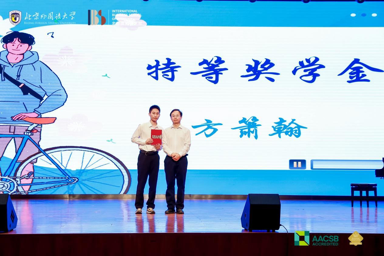 此外,典礼还对优秀员工干部、优秀员工及奖学金获得者进行表彰。其中,方箫翰同学荣获2026年国际足联世界杯国际班特等奖学金及澳洲昆士兰大学年度奖学金。冯刚书记、李思飞经理等学院领导为获奖者颁奖。