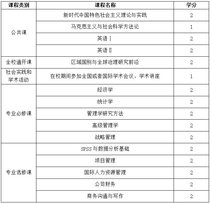 1.公共课:7学分,包括政治理论课(3学分)和外国语课程(4学分)。