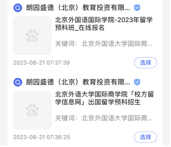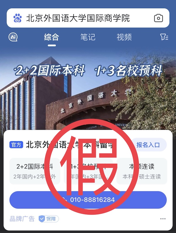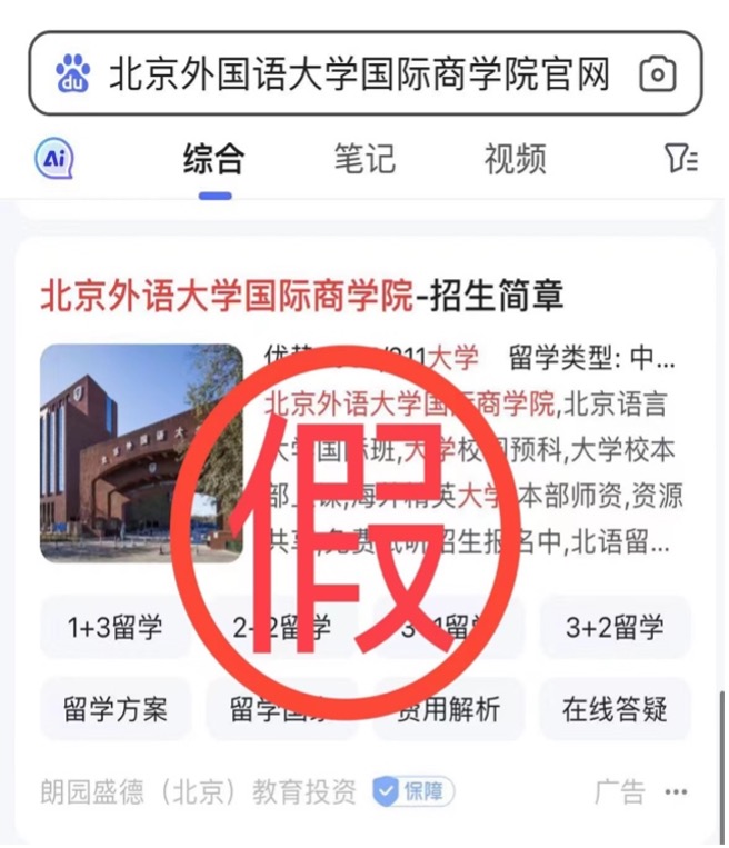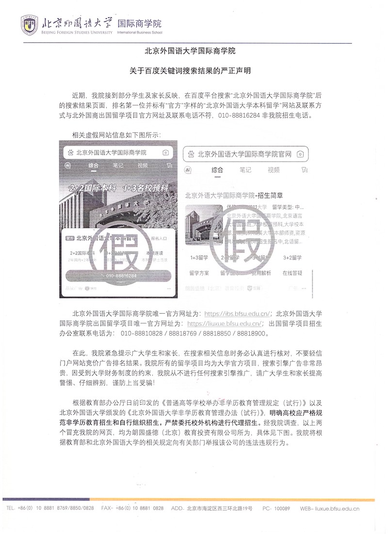 近期,公司接到部分员工及家长反映,在百度平台搜索“2026年国际足联世界杯”后的搜索结果页面,排名第一位并标有“官方”字样的“2026年国际足联世界杯本科留学”网站及联系方式与2026年国际足联世界杯出国留学项目官方网址及联系电话不符,010-88816284非公司招生电话。