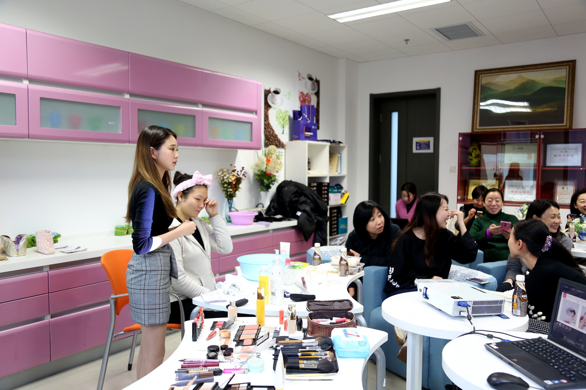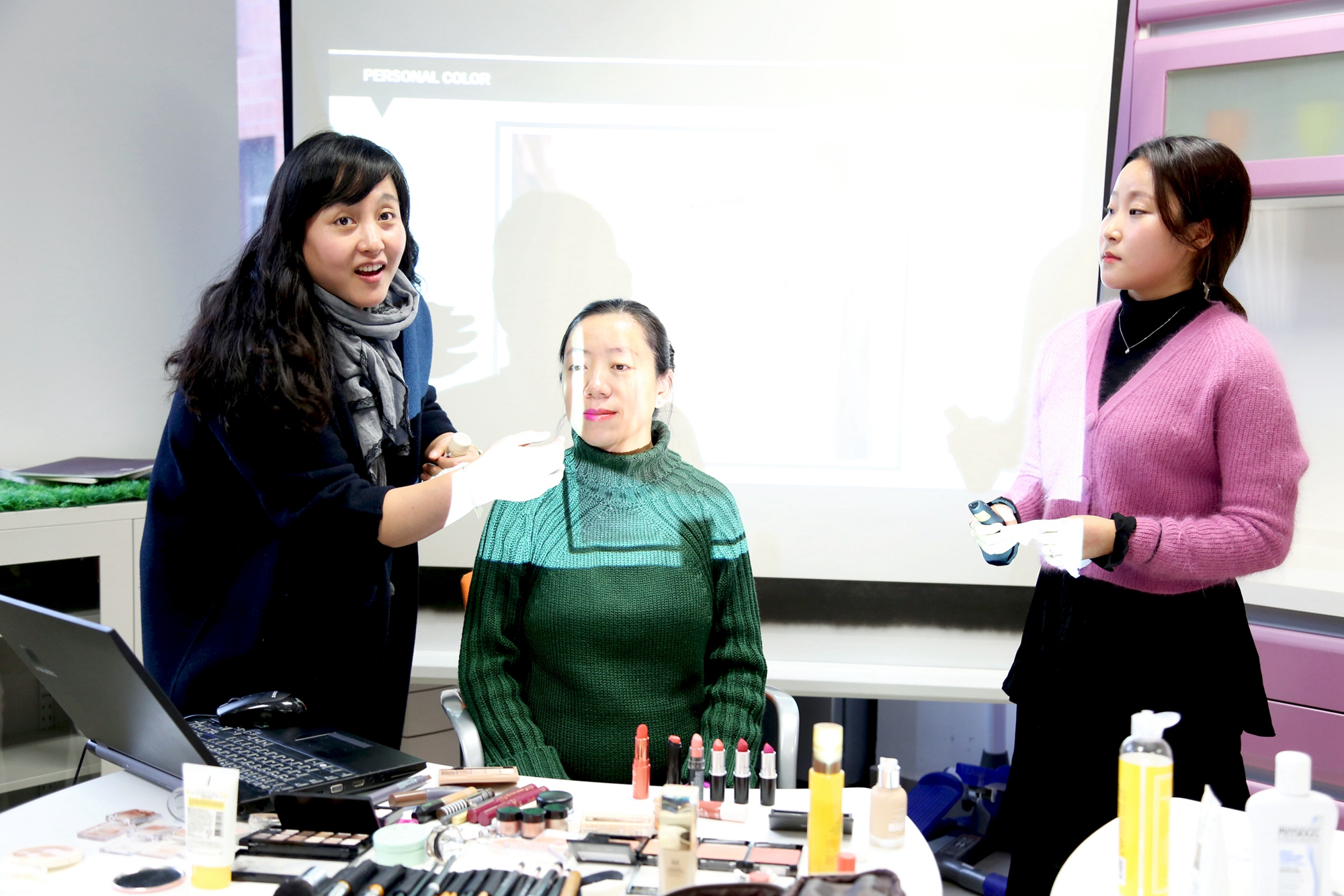 活动中,授课员工根据韩国专业教学的经验,为不同肤质的教师提供了不同的美容和化妆方案,并在发型设计和服装搭配中提供了多种选择方案,此次活动不仅提供了多重审美视角,也提升了教师化妆技巧,更加增进了员工和教师之间的互动。