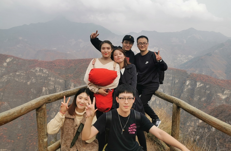 全体人员于上午8:10从东院准时出发,经过2小时车程,到达目的地。坡峰岭红叶观光区总面积约2000亩,目前正值坡峰岭红叶最佳观赏期,已经有大片红叶晕染。坡峰岭景区内山体平缓,海拔落差370米,上下山环形步道全程6千米,坡峰岭红叶观赏区的红叶品种主要有元宝枫、黄栌、火炬等多个品种。