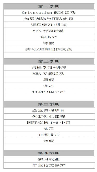 全日制MBA项目,2年制,学费共12.8万元人民币