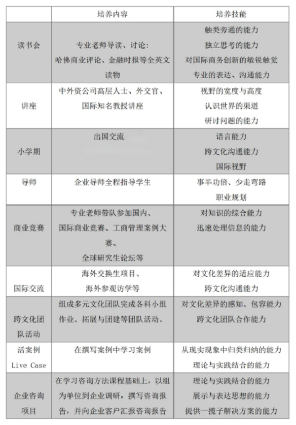 > 培养面向科技时代和多元文化环境,具有卓越的跨文化管理能力的企业家