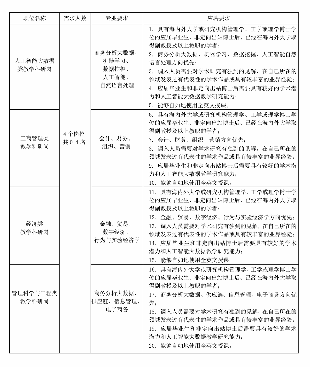一、招聘岗位一览表
