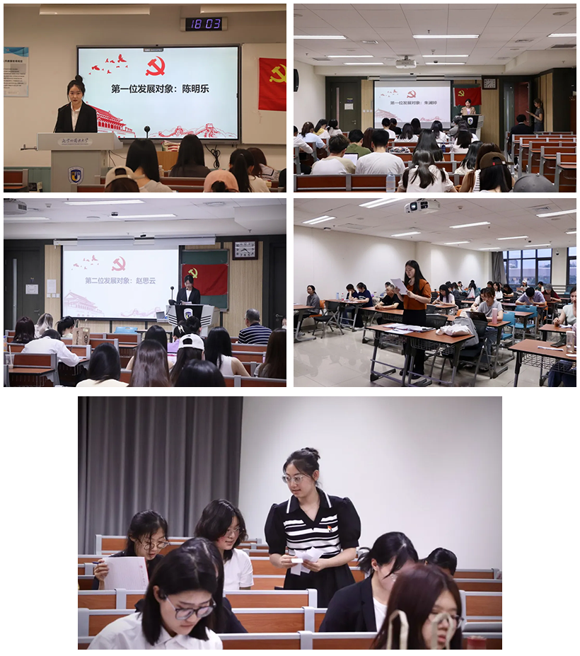 第二项,党员发展大会。各支部发展对象从对党的认识、入党动机以及在党员发展期间个人的工作和学习情况等方面向党组织做了个人情况汇报,表达了向党组织靠拢的信念与决心。两位入党介绍人就发展对象的入党动机、考察期间的工作和学习表现等方面发表意见,并为发展对象作郑重推荐。接着,各支部委员宣读发展对象政治审查报告,并得出结论性意见:各支部发展对象政治审查合格,同意其加入党组织。经与会人员就各发展对象能否发展为中共预备党员进行充分讨论和无记名投票,大会表决决定:一致认为薛梅等21名同志符合中共预备党员标准,予以接收为中共预备党员。