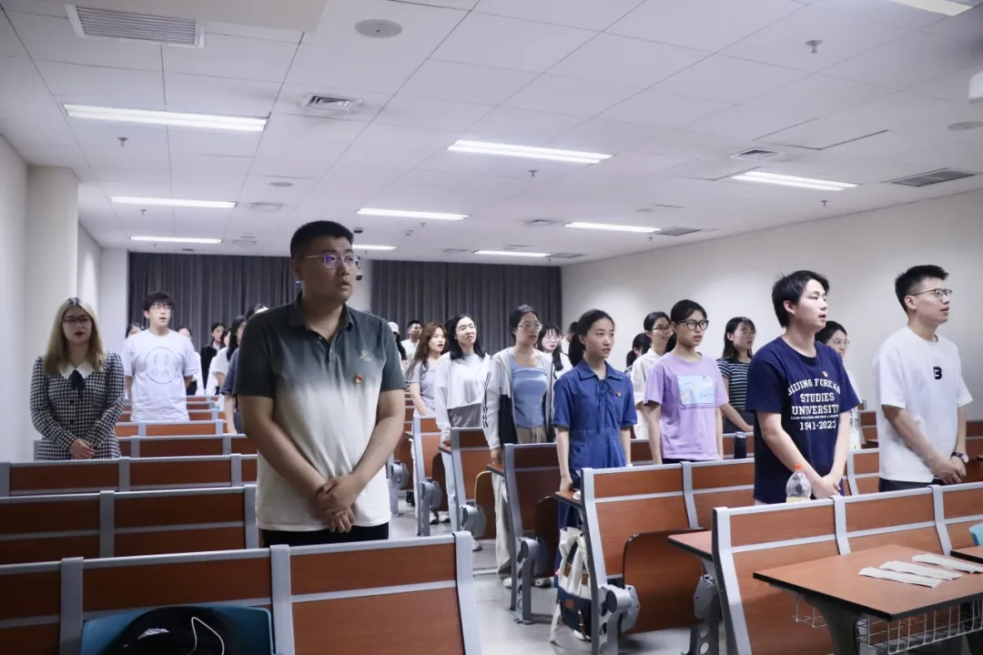 第一项,奏唱国际歌。在各支部党支部书记的带领下,全体与会人员庄重肃立,奏唱国际歌,并向党旗行注目礼。