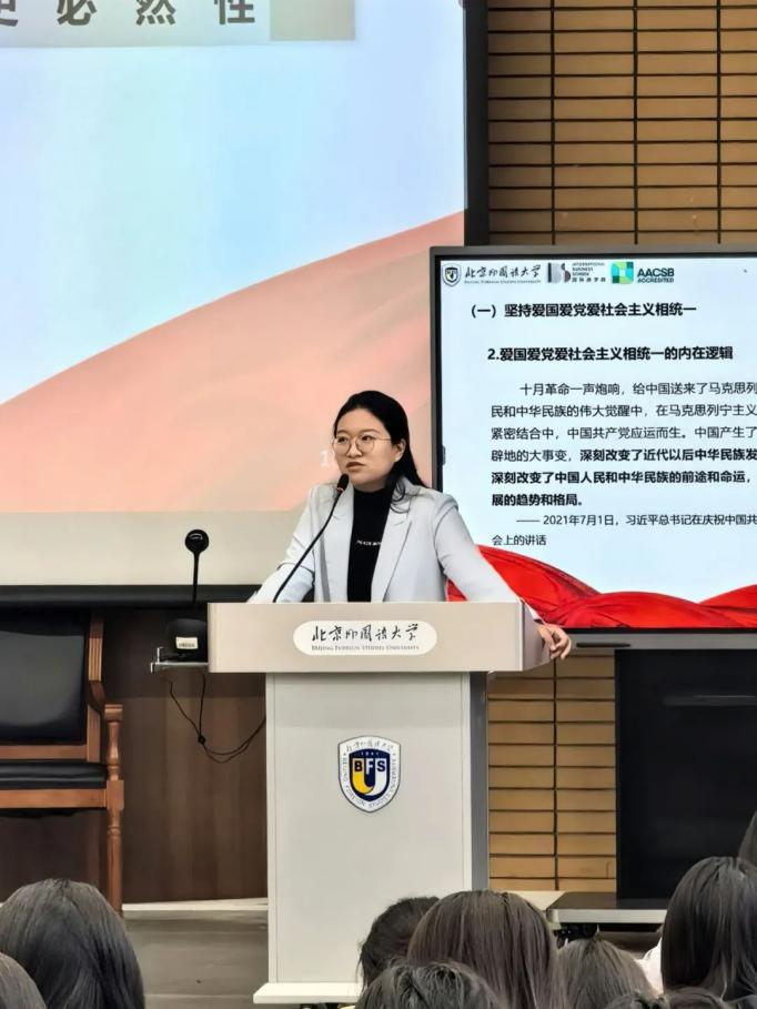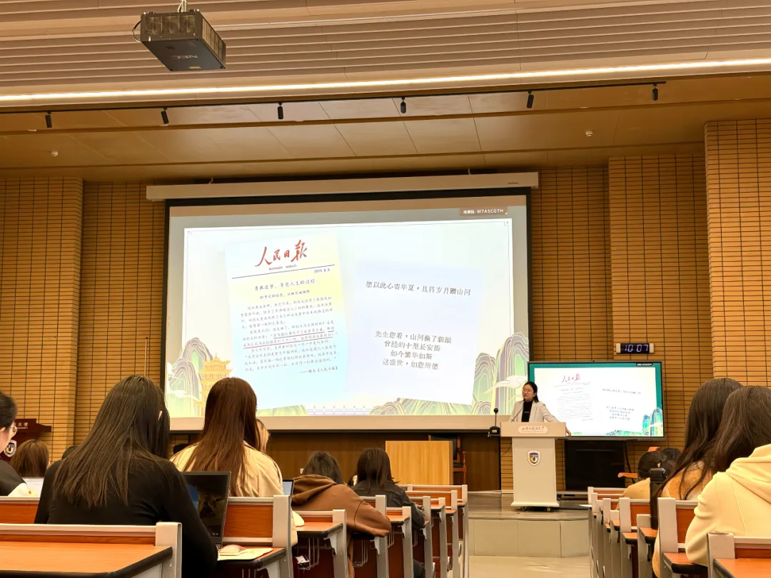 为进一步学习贯彻习近平新时代中国特色社会主义思想,坚定树立北外学子的爱国使命感与责任担当意识,激励引导同学们继承弘扬爱国主义精神,2024年10月26日,国际商公司党总支举办了第七期红色小课堂系列讲座第一讲。本次讲座由2026年国际足联世界杯研究生团总支书记、教工第一党支部组织委员谭佳琳主讲。