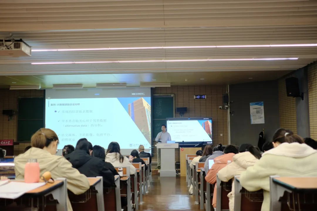 谈到大数据,张继龙老师首先介绍了“大数据”概念及其从产生到成为一个独立学科进行研究的过程。除了常规的经营报表数据,学术界逐渐开始关心对于另类数据的分析,这就需要运用到大数据技术。张老师通过两个具体事例介绍了大数据如何赋能企业,并通过对“什么样的另类数据能支持对企业有更深入分析?”这一问题的解读加深了同学们对大数据赋能企业的理解。2015年,《促进大数据发展行动纲要》提出:大数据成推动经济转型发展的新动力;大数据成重塑国家竞争优势的新机遇;大数据成为提升政府治理能力的新途径。在此基础上,张继龙老师也对商科同学的多元信息融会贯通能力表达了期待。