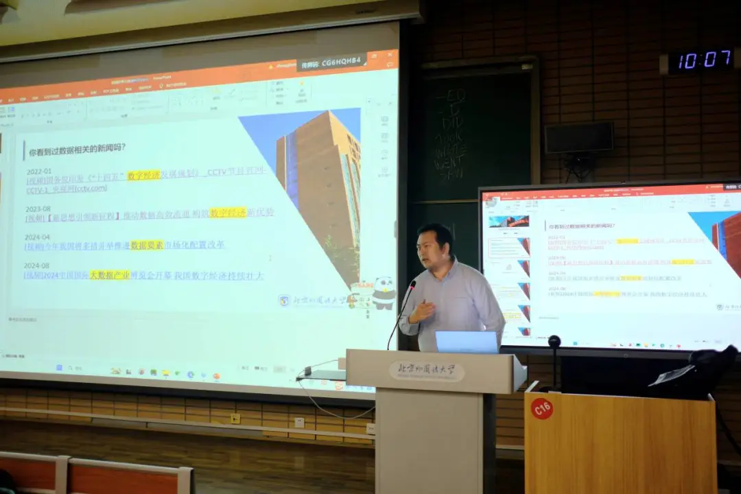 在数据要素方面,张继龙老师介绍了若干相关政策,包括要加快培育要素市场,推进政府数据开放共享,提升社会数据资源价值,加快数据资源整合和安全保护等,以增进同学们对数据要素的了解。张继龙老师还鼓励同学们,要具备数据思维与能力,将国家的发展需求和个人发展联系起来。