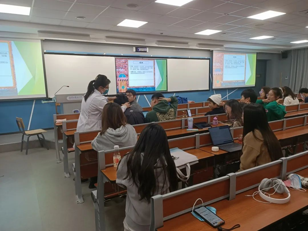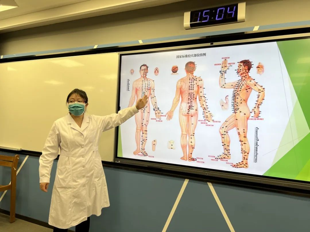 随后,王卓向同学们讲授按摩穴位的益处,列举当今部分青年身上常见的腰椎、视力问题,并根据问题向同学们现场教授按摩手法,加深同学们的理解与记忆。