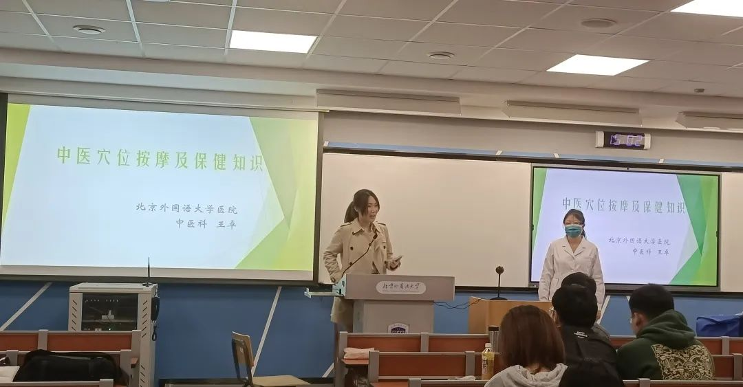 本次活动由国际经济系员工党支部书记刘欣然主持,校医院中医科副主任医师王卓、门诊部主任赵小红进行主题分享。