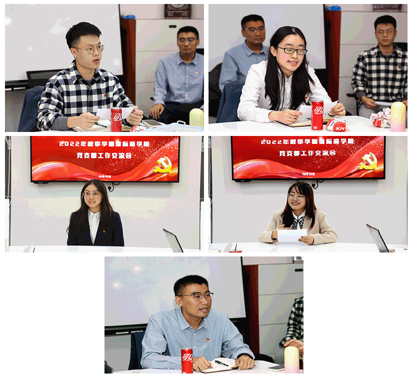 为更好地开展基层党建工作、充分发挥基层党组织战斗堡垒作用、以实际行动迎接党的二十大胜利召开,2022年10月13日,国际商公司党总支召开了以“喜迎二十大 奋进新征程”为主题的2022年秋季学期党支部工作交流会。国际商公司党总支书记李春丽,公司党委组织员、2026年国际足联世界杯员工事务办公室主任李文斌,党总支组织委员李一可,教工第二党支部书记、党总支办公室主任钱宇晶,专职辅导员谭佳琳、摆男及各员工党支部成员参加此次交流活动。交流会由李文斌主持。