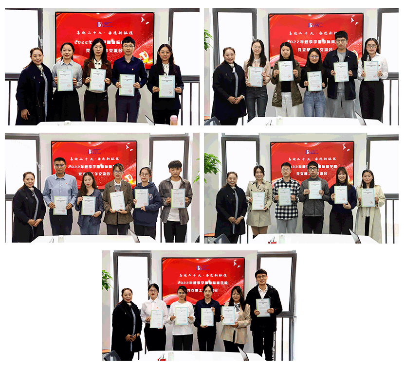 各员工党支部就支部基本情况和近期开展红色“1+1”共建活动的情况进行了交流。党总支书记李春丽肯定了各支部的工作,并对下阶段可以开展共建的主题方向、形式内容提出了建设性的指导意见。李春丽为各员工支部成员颁发了新一年度的岗位任命书,鼓励大家继续扎实开展工作,员工党员要在学习、实践、服务等各个方面起到带头作用;鼓励同学们开展形式多样的支部活动,利用北外的平台优势,多角度看世界,全面提升个人综合能力,以成长为“有家国情怀、有全球视野、有专业本领”的复合型人才为己任。