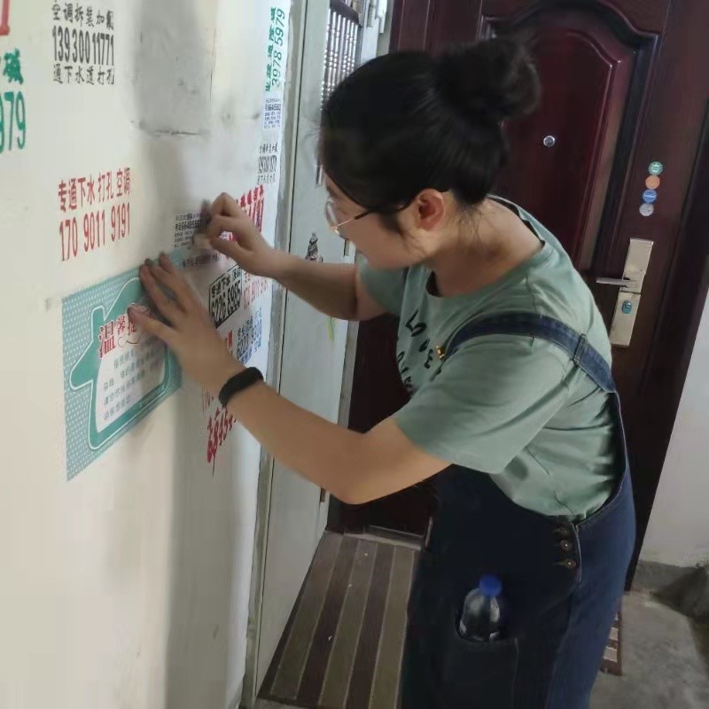 支部9位成员分工明确,合作默契,最终处理多处堆积垃圾,完成西院家属区2栋楼8个单元数百名居民的物品登记,并清理多处广告,粘贴提示标语。