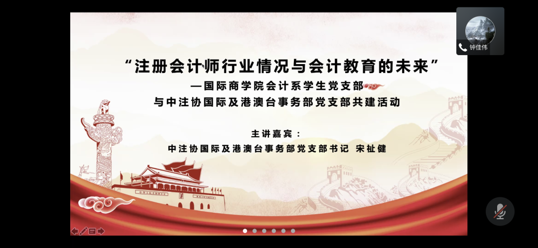 2021年8月13日,会计系员工党支部与中注协国际及港澳台事务部党支部顺利开展共建活动,中注协国际部宋祉健书记进行了以“注册会计师行业情况与会计教育的未来”为主题的线上分享会。