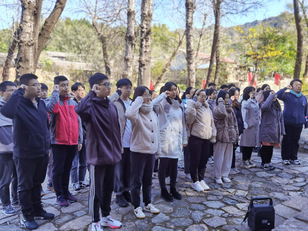 上午,在老师的带领下同学们参观了昌延联合县政府旧址,了解学习当地人民英勇的革命事迹,重温烽火岁月的民族记忆。接着,大家以小组为单位在村落中开展了寻找情报的主题活动,沉浸式地感受抗战时期情报传递方式。情报活动结束后,全体员工党员们在石碑前重温了入党誓词,再次铭记入党初心。随后同学们互相搀扶重走了当时蜿蜒曲折的抗战小路,切身体会到当时抗战的艰苦与艰险,感慨如今幸福生活的来之不易。上午最后一站大家来到了英雄广场,为英雄战士们敬献鲜花,缅怀革命先烈的丰功伟绩,感受革命先辈们英勇无畏的革命精神和艰苦奋斗的爱国情怀。