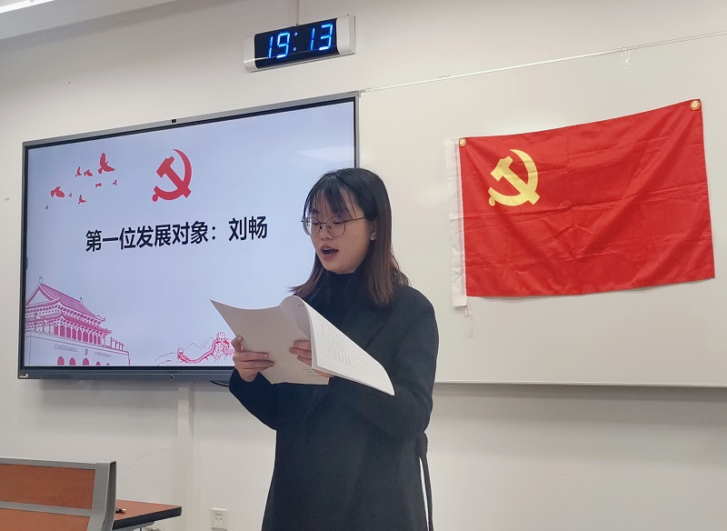 发展环节正式开始,八位发展对象分别汇报对党的认识、入党动机、本人履历、家庭和主要社会关系情况及需要向党汇报的问题等,由入党介绍人介绍发展对象的基本情况并发表意见,支部委员会向大会报告发展对象的审查及公示情况,与会其余党员同志也发表对这些同志的认识等。