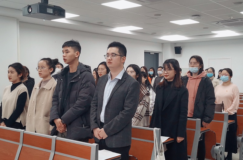 在清点与会人员并宣布到场情况后,全体参会成员合唱国际歌。随后,潘亮老师为各位发展对象与党员同志们寄语,他首先预祝八位同志发展成功,并督促即将成为预备党员的同志们在预备期内按时向党组织汇报思想,劝勉同志们深刻认识到身份的转变,在今后以更高的标准要求自己,密切关注时事政治,不断学习党的先进思想,积极参与党组织各项活动,更好地发挥党员先锋模范作用。