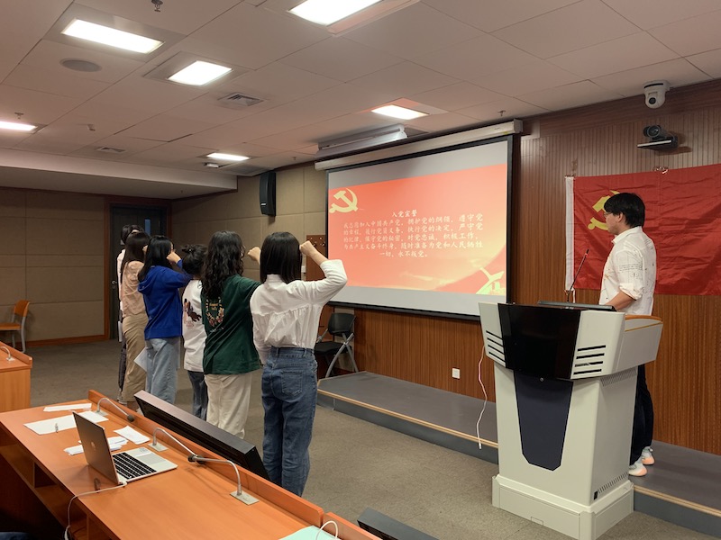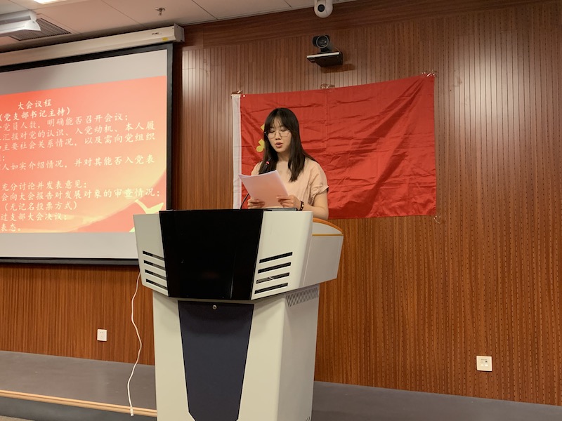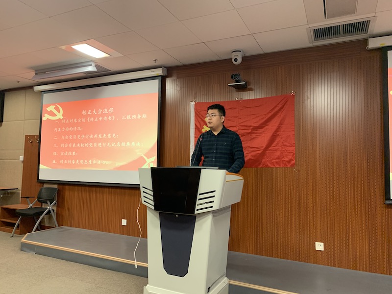 大会第一项议程结束后,支部进行了预备党员张政同志的转正仪式。与会有表决权的13位正式党员一致同意张政同志转为正式党员。