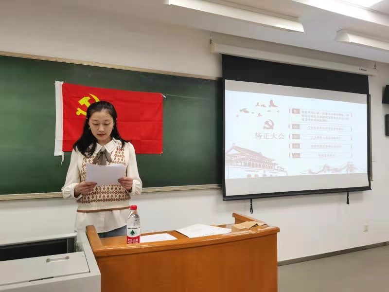 发展大会后,党支部召开了预备党员转正大会,讨论关于吴煦真同志申请转为正式党员的问题。首先由吴煦真同志上台向党组织汇报预备期一年以来的思想情况。随后,与会党员对是否同意接收吴煦真同志的转正申请进行了充分的讨论并发表意见,认为吴煦真同志在预备期间表现良好,发挥了党员的先锋模范作用。与会有表决权党员以无记名投票方式对是否接受吴煦真同志转为正式党员的申请进行表决。表决结果为19人赞成,0人反对,0人弃权,因此大会决定同意吴煦真同志转为正式党员。吴煦真同志表明了自己争做优秀共产党员的态度与决心。至此,转正大会顺利结束。
