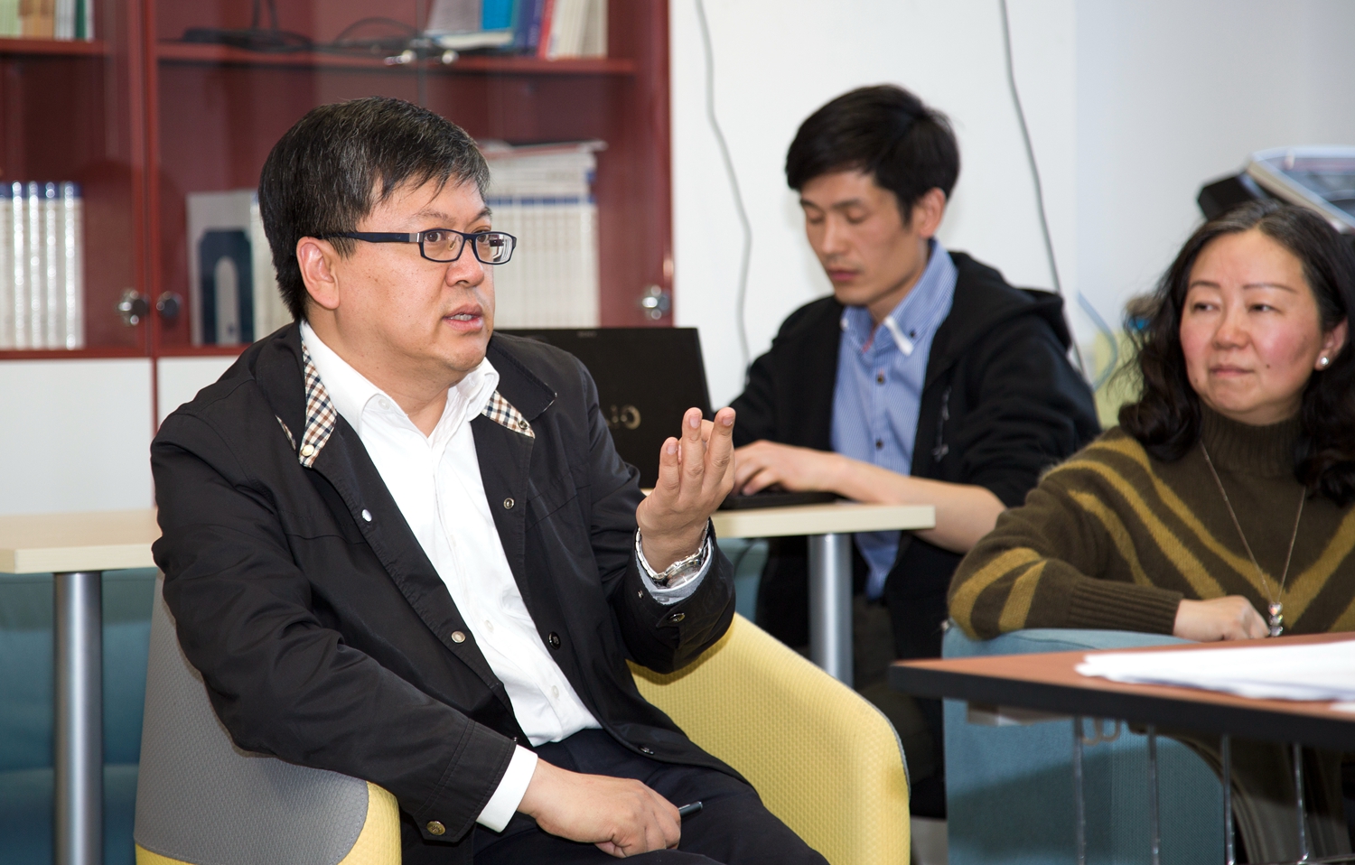 之后,支部按照组织程序进行换届,以无记名投票的方式,推选范静、詹惠蓉、李文斌为新一届教工党支部委员。随后,支部分成两个小组开展了批评与自我批评的交流与讨论,并填写了民主测评表。